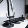 Reguliariai patikrinkite vakuuminių padų švarą ir sandarinimo kraštus. Jei paviršius ar padas yra nešvarus, jį pakanka nuvalyti drėgnu skudurėliu. Tinkama priežiūra padeda užtikrinti maksimalų sukibimą ir ilgesnį laikiklio tarnavimo laiką.