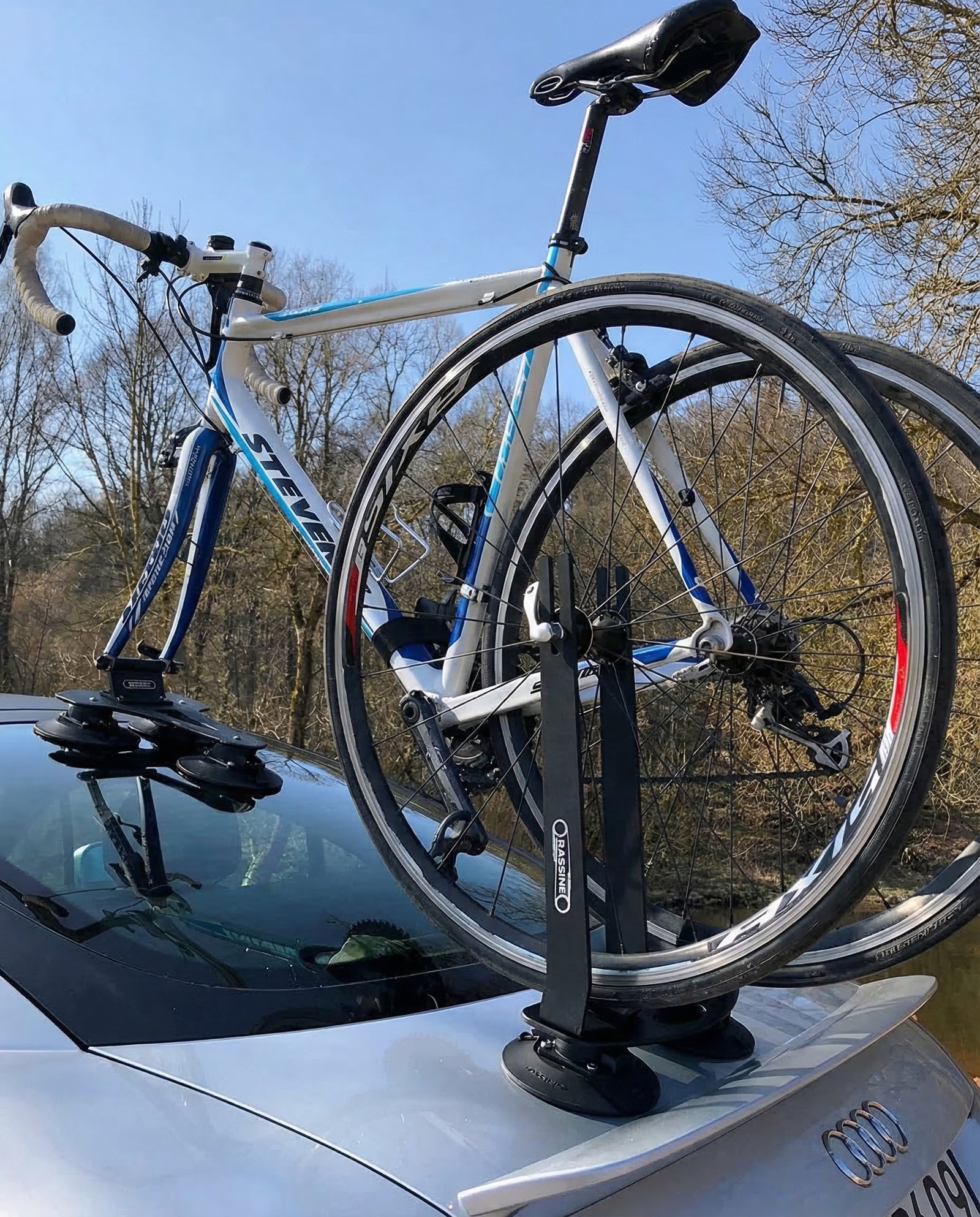 Vakuuminis Dviračių Laikikliai RASSINE – paprastai montuojami, visiems automobiliams tinkantys dviračių laikikliai.